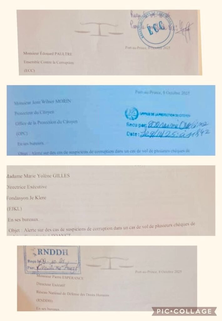 Toujours d’après le plaignant, le directeur administratif et financier de l’OAVCT, Edner Philogène, exercerait des pressions depuis septembre 2025 pour qu’il vienne récupérer un nouveau chèque imprimé en remplacement de celui disparu. Richardson Séraphin affirme avoir refusé de le faire, réclamant plutôt que toute la vérité soit faite sur l’origine du détournement et que les auteurs soient identifiés.