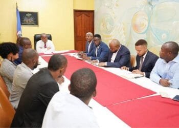 Le 24 juillet 2024, le Premier ministre Garry Conille, accompagné de son cabinet, a eu une réunion avec des représentants ...